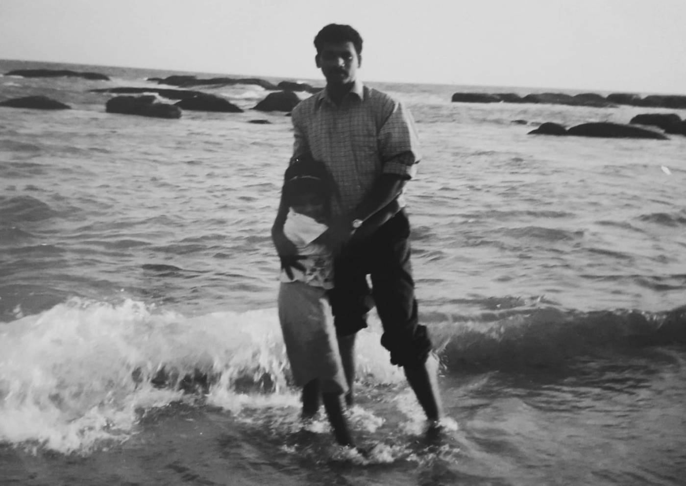 I came across the above photograph a while ago and I was quite amused by the stances of the two characters that were captured. The younger one is focused on the waves which seem to be fast approaching her as she clings on to her father. The man, however, is clearly not phased by the water as he confidently poses for the photographer whilst holding his daughter. Now obviously, from our point of view, we can see that the waves aren’t at all threatening but believe me when I say, she truly thought they were terrifying. How do I know? Because I am she.